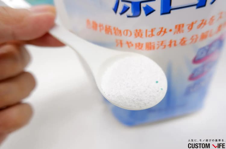 【使用方法】洗濯用洗剤と一緒に投入して洗濯。つけおきは30分以上2時間以内を推奨。